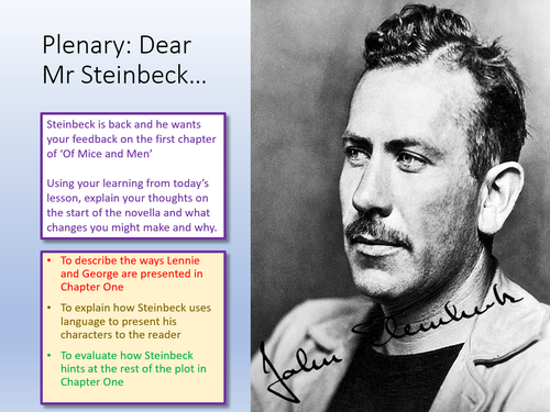 How Does Steinbeck Present Lennie And George In Chapter 1 Of Mice And Men Teaching Resources